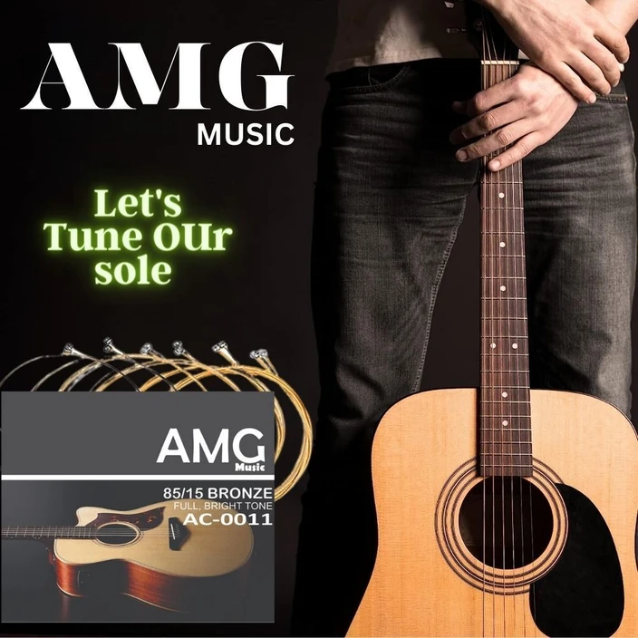 Precision-engineered with 85/15 bronze winding over a durable stainless steel core, these strings are designed to deliver the perfect fusion of crisp brightness, smooth feel, and long-lasting durability. With enhanced clarity, powerful projection, and reliable tuning stability, AMG strings give your instrument the brilliance and warmth every guitarist craves.