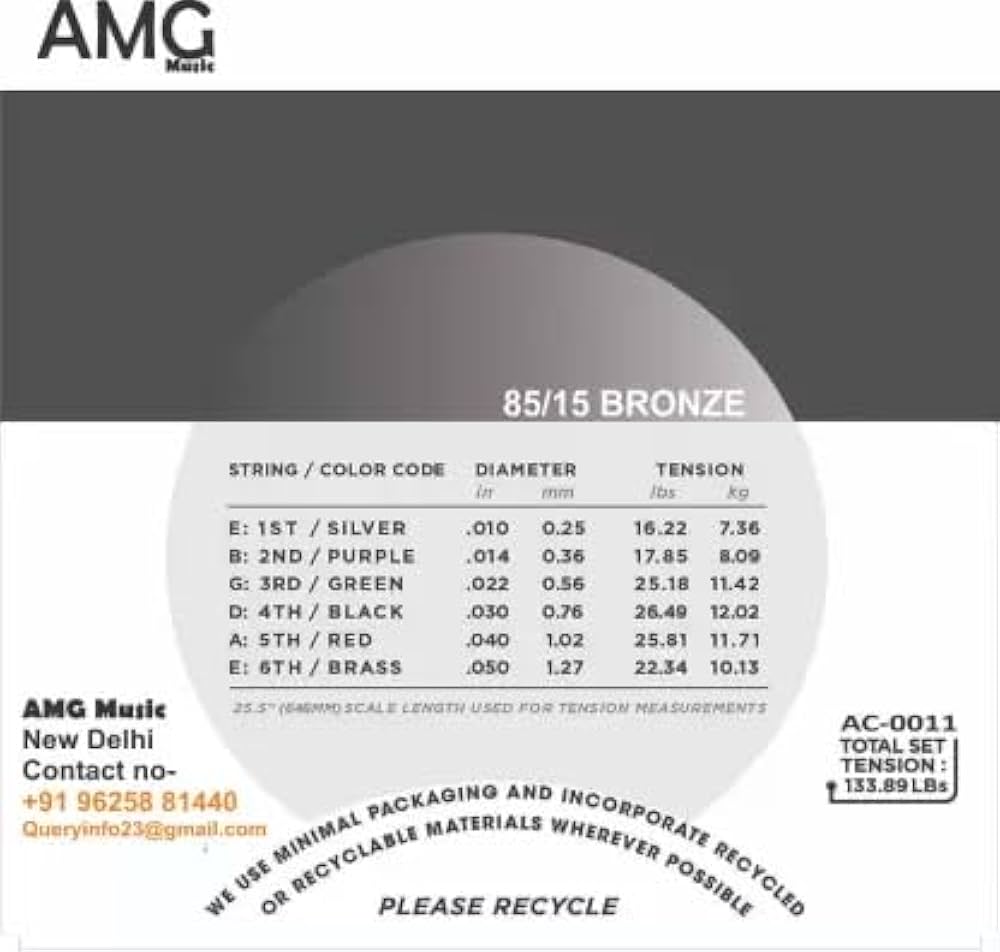 AMG Guitar Strings, Acoustic Guitar Strings, Bright Tone Strings, 85/15 Bronze Strings, Stainless Steel Guitar Strings, Indian Guitar Strings, Guitar Accessories, Guitar String Set with Picks, Eco-Friendly Guitar Strings, Music Gear India, Guitar Strings for Beginners, Acoustic String Set, High Tension Guitar Strings, Gladkart Music