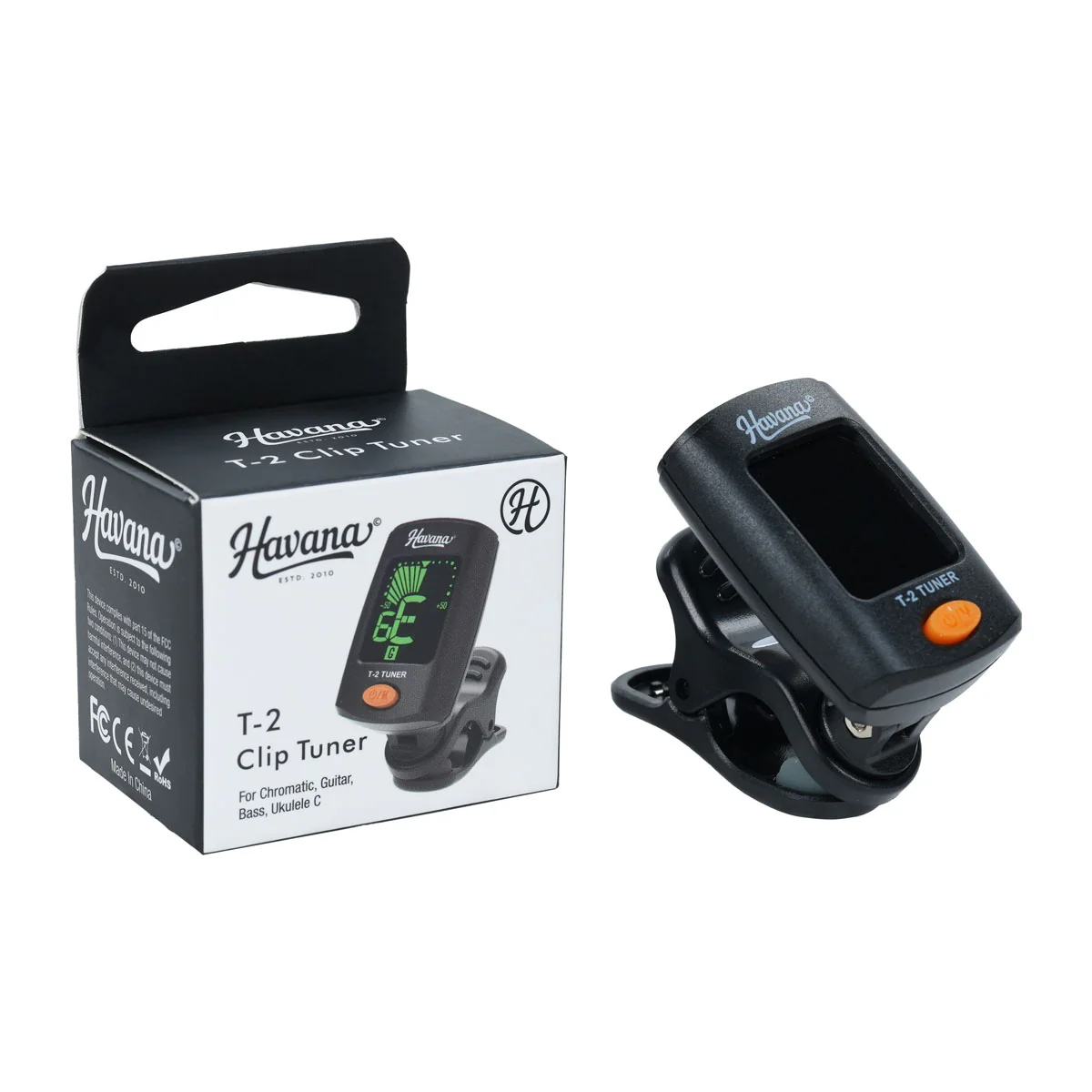 Havana T-2 Clip-On Guitar Tuner for accurate tuning of guitar, bass, ukulele, and more. Large LCD display, high sensitivity, and lightweight design. Buy now at Gladkart.com.