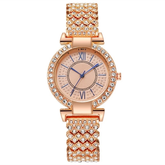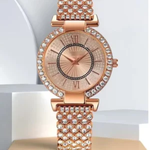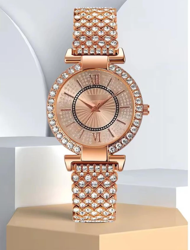 - Diamond-Patterned Strap: The luxurious rose gold strap is adorned with sparkling diamond-like stones, enhancing your overall look with a touch of glamour.