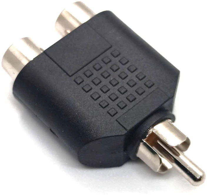 stereo to mono adapter, RCA splitter 1 male to 2 female, audio video converter cable, RCA audio splitter, mono RCA adapter, plug and play RCA splitter, AV cable adapter, compact RCA splitter