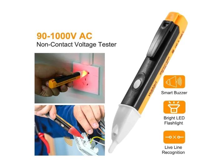 Ensure electrical safety with this Non-Contact Voltage Tester Pen, designed to detect AC voltage in the range of 90 to 1000V. Ideal for electricians, technicians, homeowners, and DIY users, this compact and lightweight voltage detector offers safe, contactless testing for outlets, switches, cables, and circuit breakers.